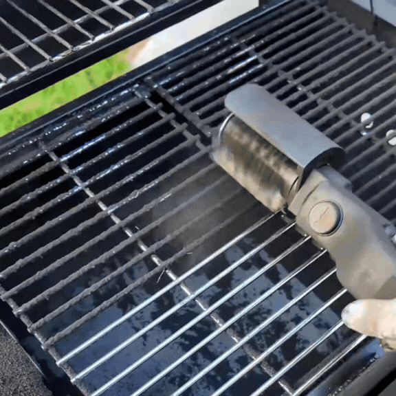 For best results, preheat your grill for a few minutes, then turn it off and clean the grates while they are still warm. This helps loosen grease and residue so the brush can remove it more easily.